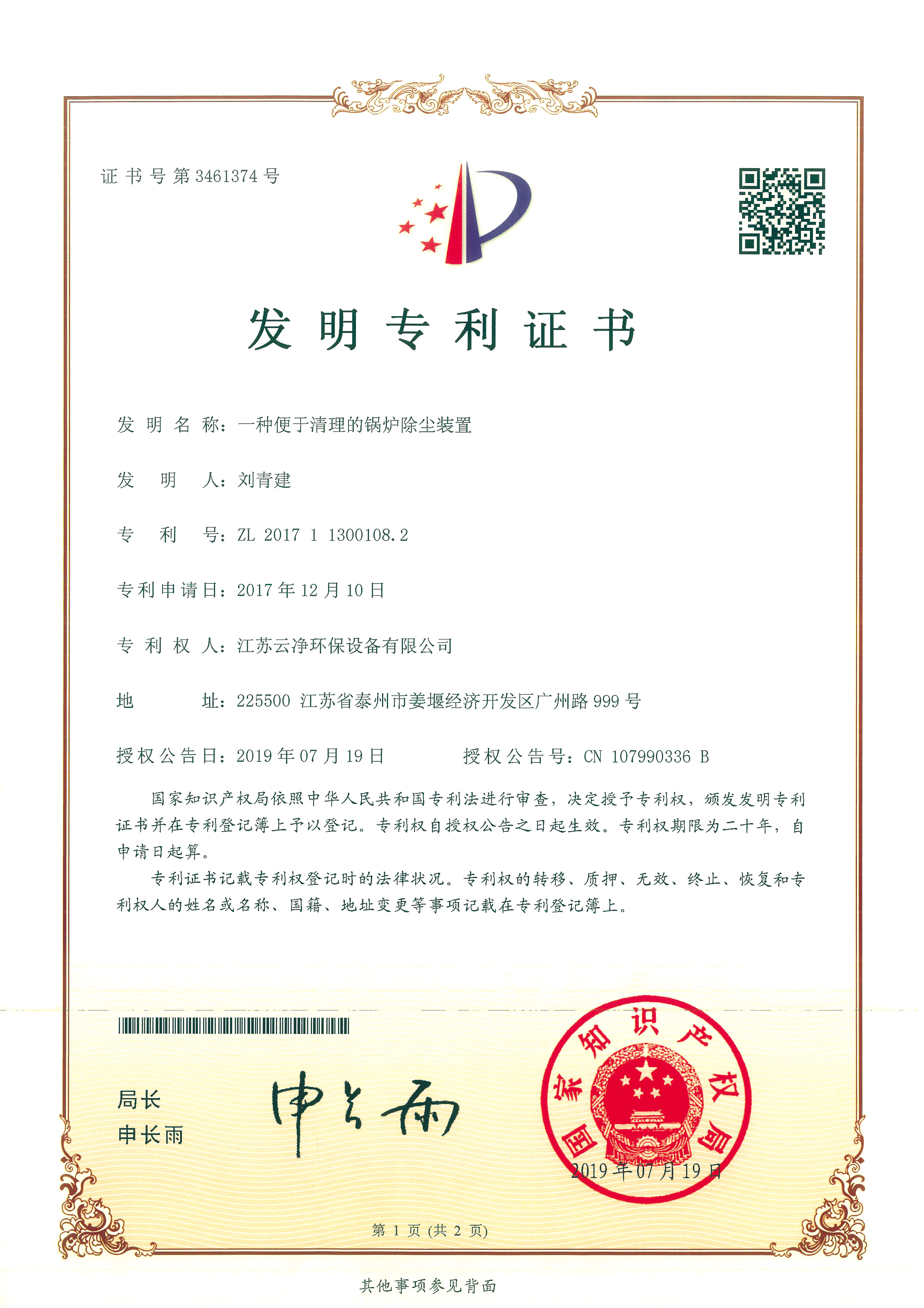 公司先后獲得“江蘇省民營科技企業(yè)”﹑“環(huán)保產(chǎn)業(yè)骨干企業(yè)” 、“重合同守信用AA級企業(yè)” 、通過ISO9001:2015質(zhì)量體系認證、ISO14001:2015環(huán)境管理體系、知識產(chǎn)權管理體系和ISO45001:2018職業(yè)健康安全管理體系認證,為江蘇省高新技術企業(yè)。多項產(chǎn)品獲得高新技術產(chǎn)品認定,擁有發(fā)明及實用新型專利31件(ZL202020254279.7、ZL202020254287.1、ZL202020288783.9等),現(xiàn)有各類除塵設備﹑脫硫設備﹑超凈排放設備八大類近200個規(guī)格產(chǎn)品,特別是開發(fā)出國內(nèi)的有色冶煉系統(tǒng)收砷布袋除塵器,該設備開創(chuàng)了收砷布袋除塵器先例,本體使用壽命可達十年之久,是國內(nèi)其他設備無法比擬的。公司具備良好的產(chǎn)品研發(fā)能力,通過與相關科研院所技術合作開發(fā)了高效除塵器、燒結(jié)板除塵器、濾筒除塵器、脫硫濕電超凈排放一體化設備、中低溫脫硝設備、等離子體除臭設備等,產(chǎn)品受到用戶的一致好評。